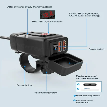 Waterproof Universal Motorcycle USB Charger with Voltmeter Adapter