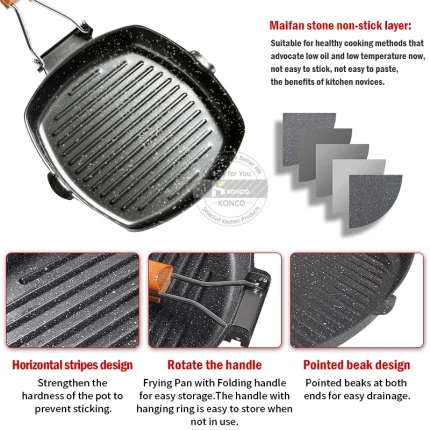 Non-Stick Maifan Stone Frying Pan with Foldable Handle