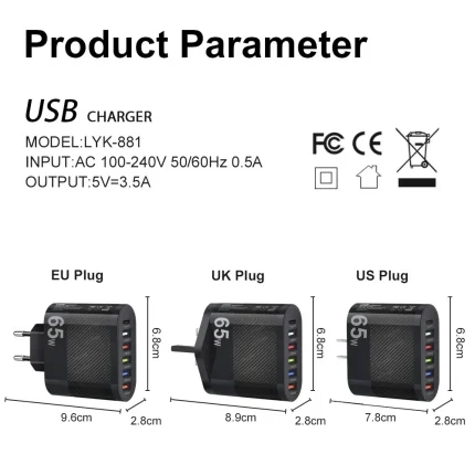 5-Port USB Charger with PD and QC 3.0 for Phones