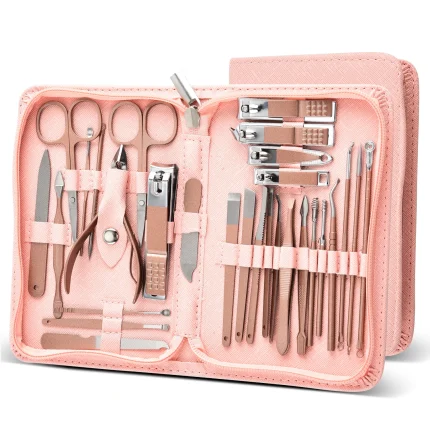 Professional Manicure Set with Nail Clippers and Pink Case