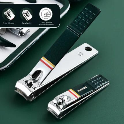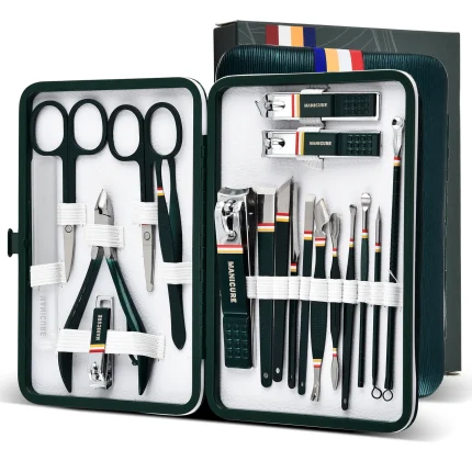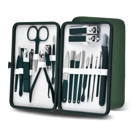 Stainless Steel Manicure Set with Portable Green Case