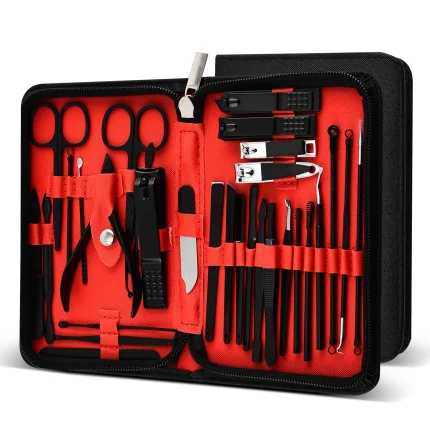 Professional Black-Red Manicure and Pedicure Set with Travel Case
