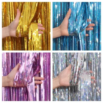 Glitter Gold Tinsel Fringe Backdrop Curtain for Parties