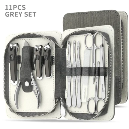 Compact Stainless Steel Travel Nail Kit with Storage Bag