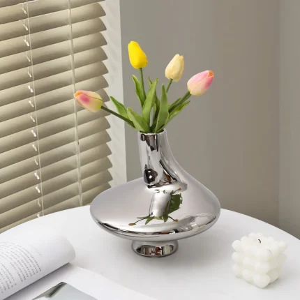 Graceful Bloom, Wide-Mouth Ceramic Vase, Perfect for Dried Flowers and Elegant Home Decoration