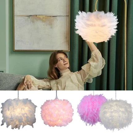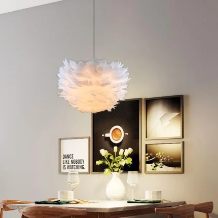 Feathered Elegance, Modern Pendant Lampshade for Bedroom and Dining Room Ambiance