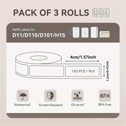 Mini Thermal Label Printer Waterproof Scratch-Resistant Label Paper
