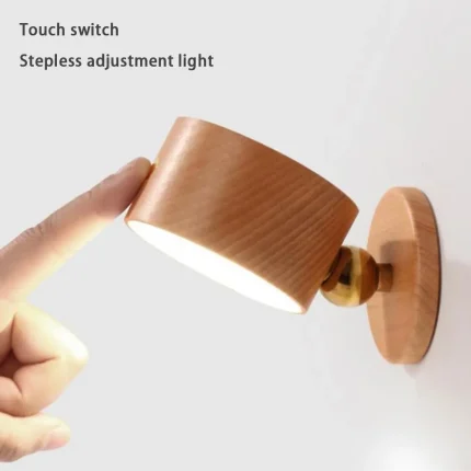 Rechargeable LED Wall Lamp, Touch Control, Magnetic Absorption, USB Powered, and Stylish Wooden Design for Bedside Decor