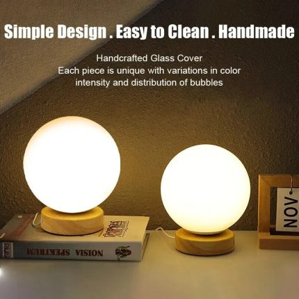 Celestial Glow: 3D Moon Glass Lamp with Wooden Stand – A Mini Night Light Powered by USB