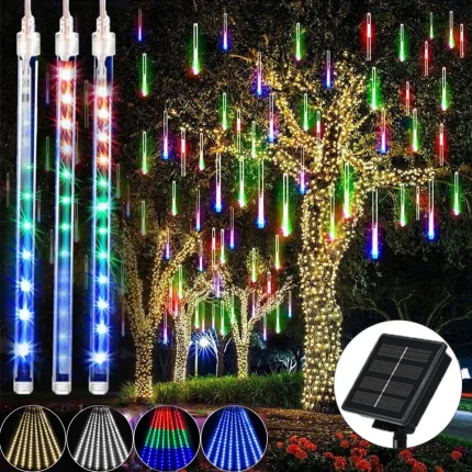 Solar Splendor Garland Meteor Shower, Lights Festive Nights, Outdoor Waterproof Lights, New Year Garden Lights, Street Decoration, Winter Wonderland Decor