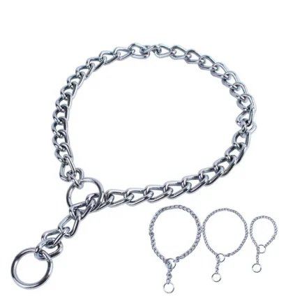 Adjustable Chrome Stainless Iron Dog Collar: No-Choke Traction Rope Lead Leash for Pet Safety