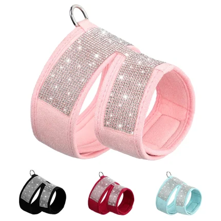 DazzlePaws: Rhinestone-Adorned Suede Harness for Fashionable Pets