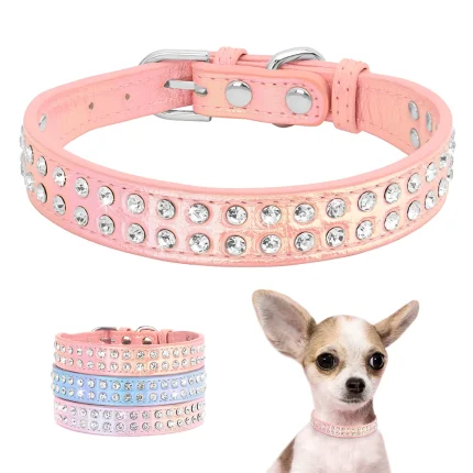 Dazzle Paws Crystal Leather Collar: Glamorous Style for Your Petite Pup