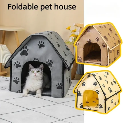 Pawsome Retreat: Portable Foldable Pet House with Footprint Pattern for Cats and Dogs
