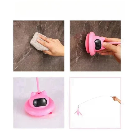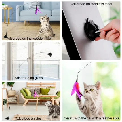 SuctionPaws Teaser Set, 4-Piece Cat Toy Kit with Suction Cup, Steel Wire Teaser Stick for Interactive Play