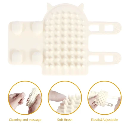 Furry Friend Flexi-Brush, Adjustable Strap Pet Massage & Tickling Brush with Gentle Round-Head Comb Teeth