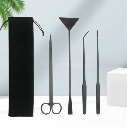 4-Piece Stainless Steel Scissors Set for Fish Tank Cleaning, Includes Wave Clippers, Straight Shears, Tweezers, and Sandscraper