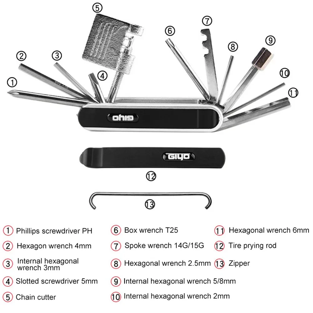12 in 1 Bicycle Repair Tools Kit Portable MTB Bike Mini Cycling Multitool Hex Spoke Screwdrivers Tyre Lever Allen Wrench