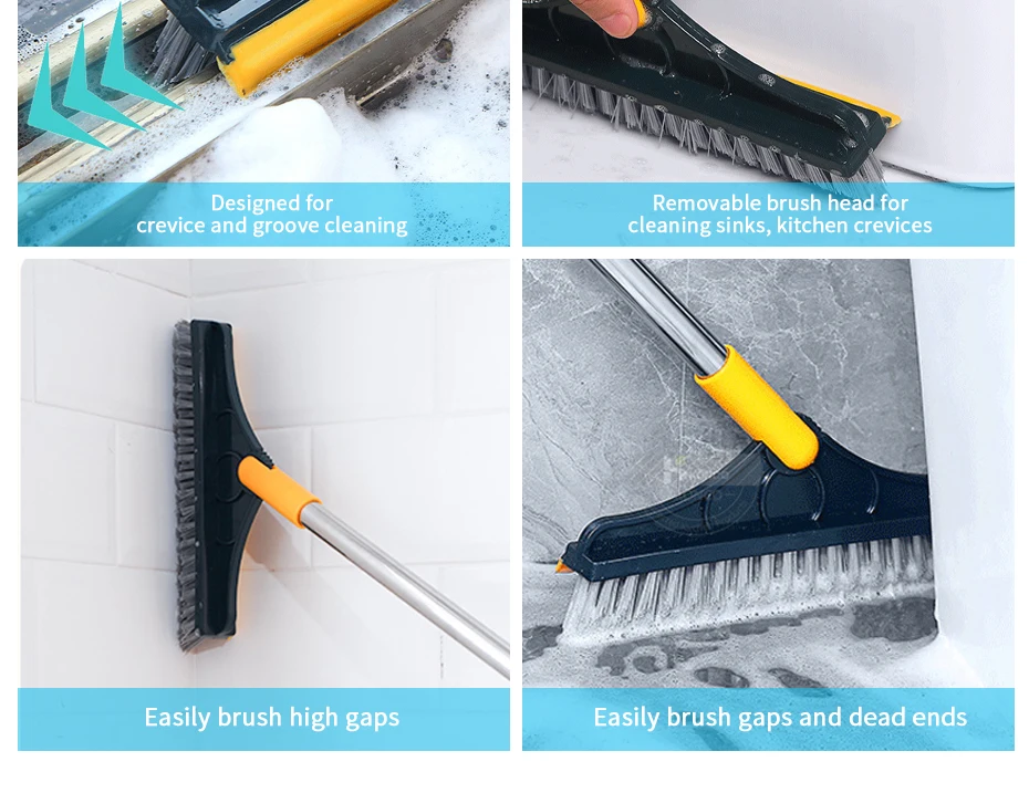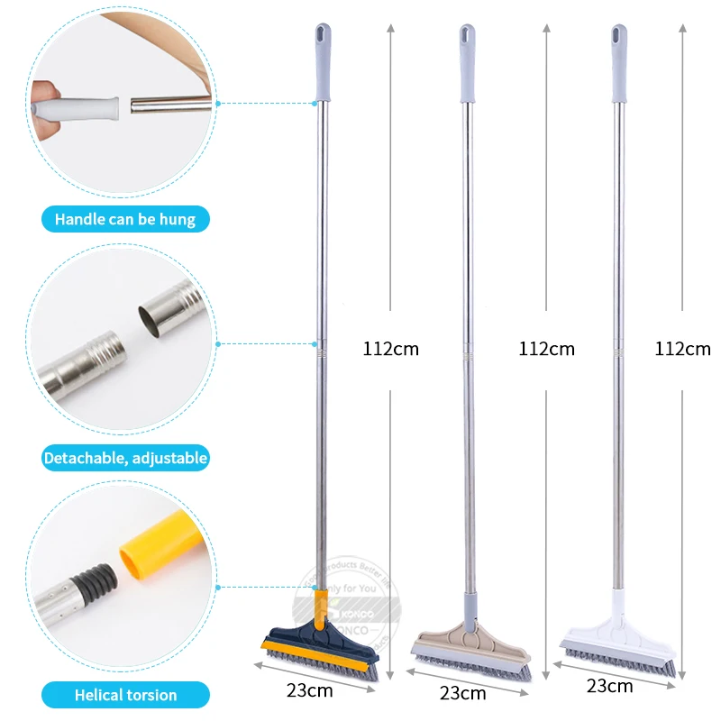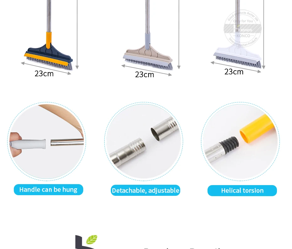 2.Floor Scrub Brush 2 in 1 Scrape&brush Push Broom Ergonomic Principle: The Angle of the pole and brush part conforms to the ergonomic principle, which can be used to use the broom/brush with less effort, so that cleaning can be simple and convenient.