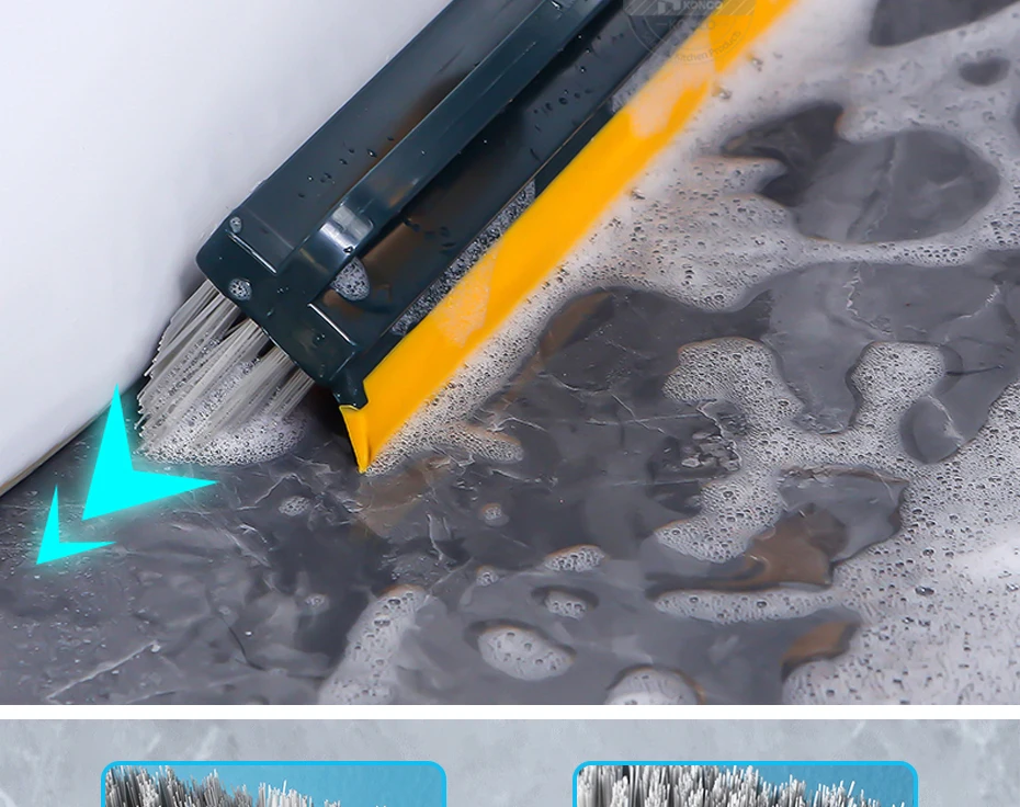 2-in-1 Floor Scrub Brush with Long Handle and Wiper