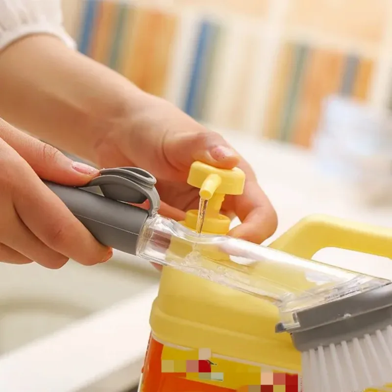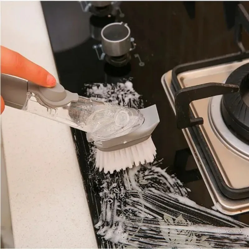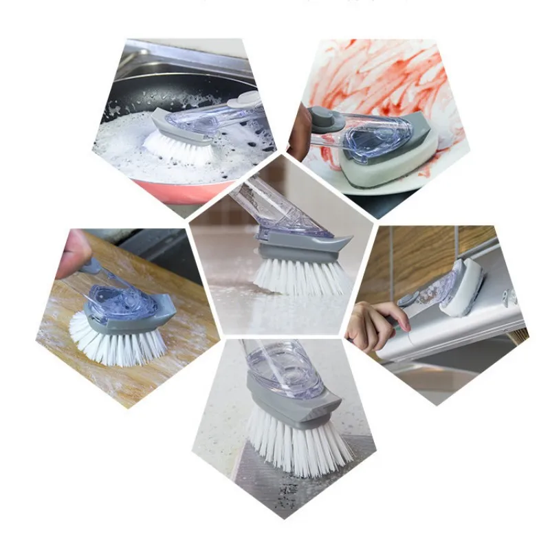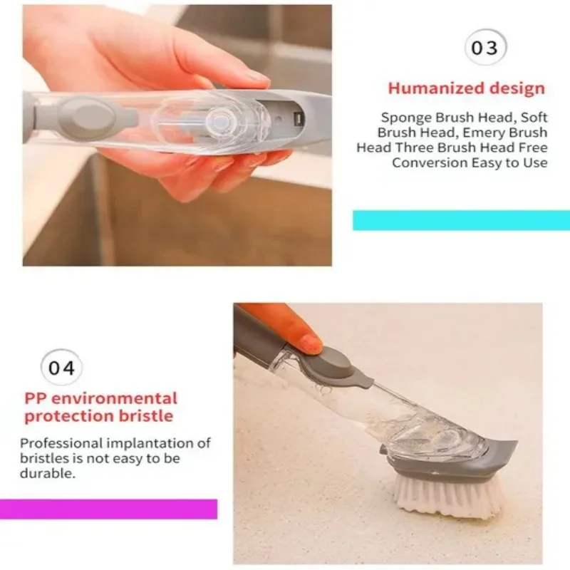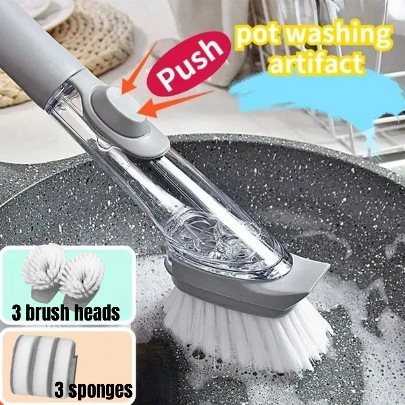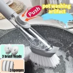 Kitchen Cleaning Brush 2 In 1 Long Handle Cleaing Brush with Removable Brush Sponge Dispenser Dishwashing Brush Kitchen Tools