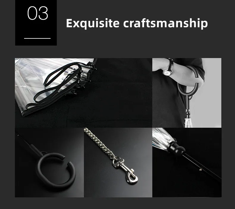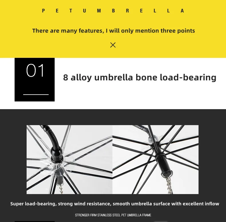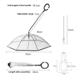 Features: Pet umbrella solves the problem of rainy days you can not take your dog out, steering umbrella bar according to the size of the pet to adjust the angle of the rain, comfortable C-shaped handle ergonomic, you can comfortably control your dog; in the bar retractable design, transparent umbrella allows you to keep your pet in sight when walking Oh, not raining can be used as a leash Oh!