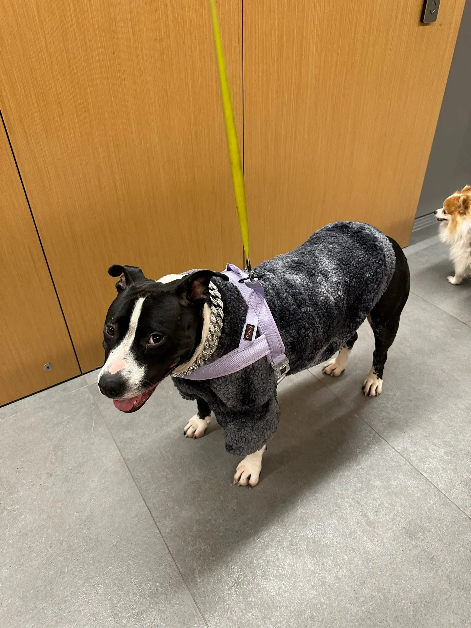 She was right, she's very beautiful. My dog has a slimmer body, but it weighs around 17kg. I don't think it goes very well on medium dogs, but it woul...More