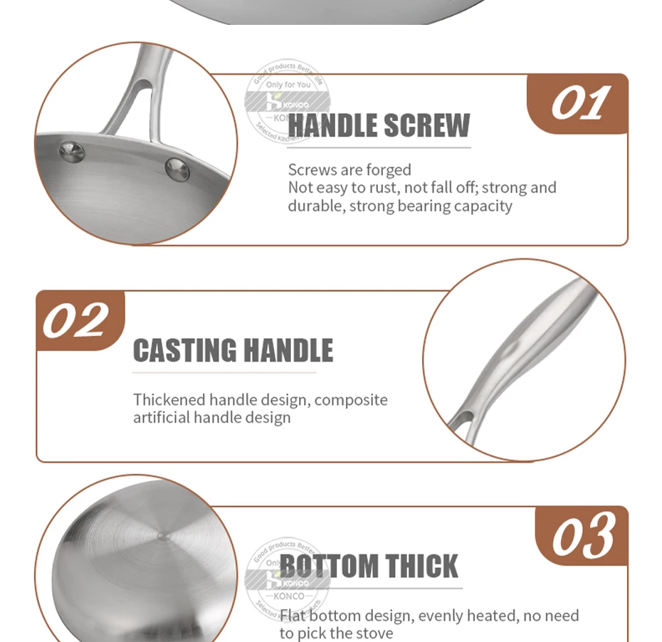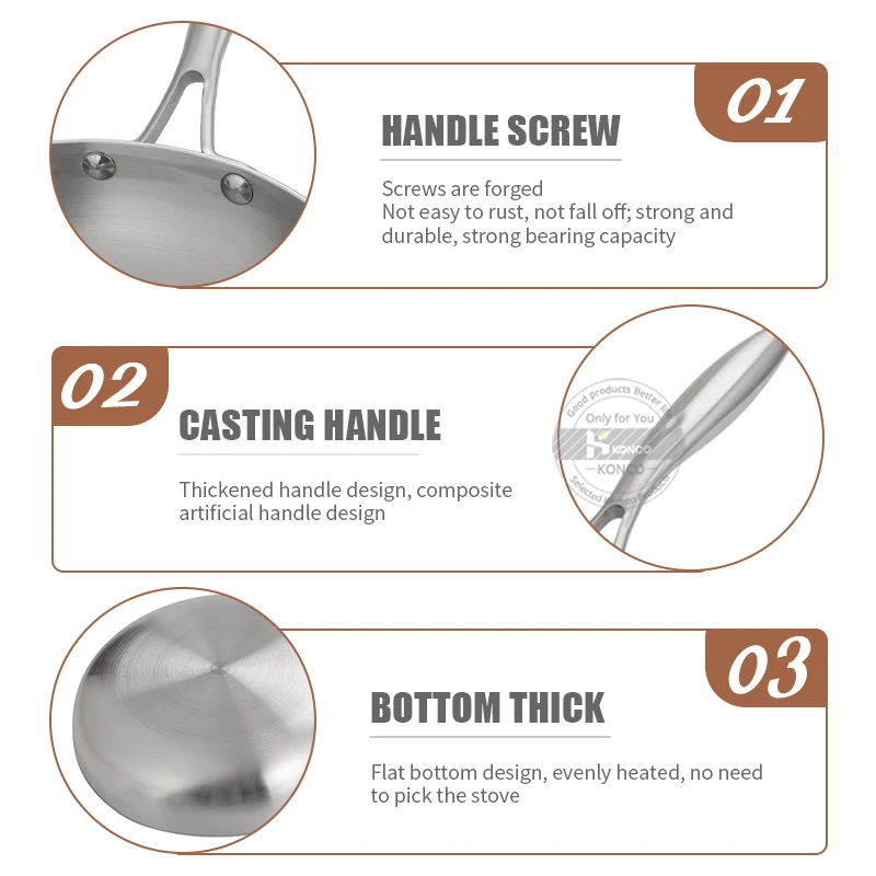 1.【Tri-Ply Construction】Made with a responsive aluminum core bonded together with 2 layers of durable, stainless steel all the way around for maximum durability and fast, even heat distribution.