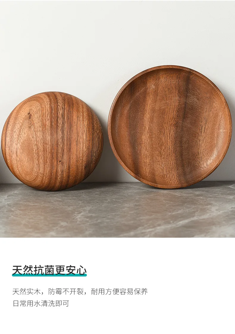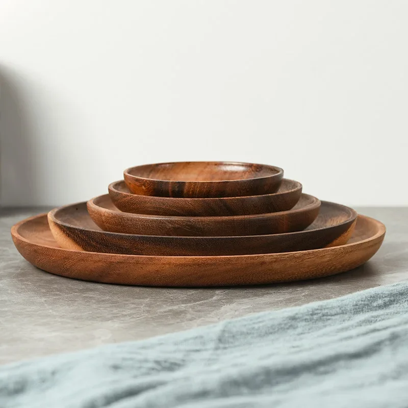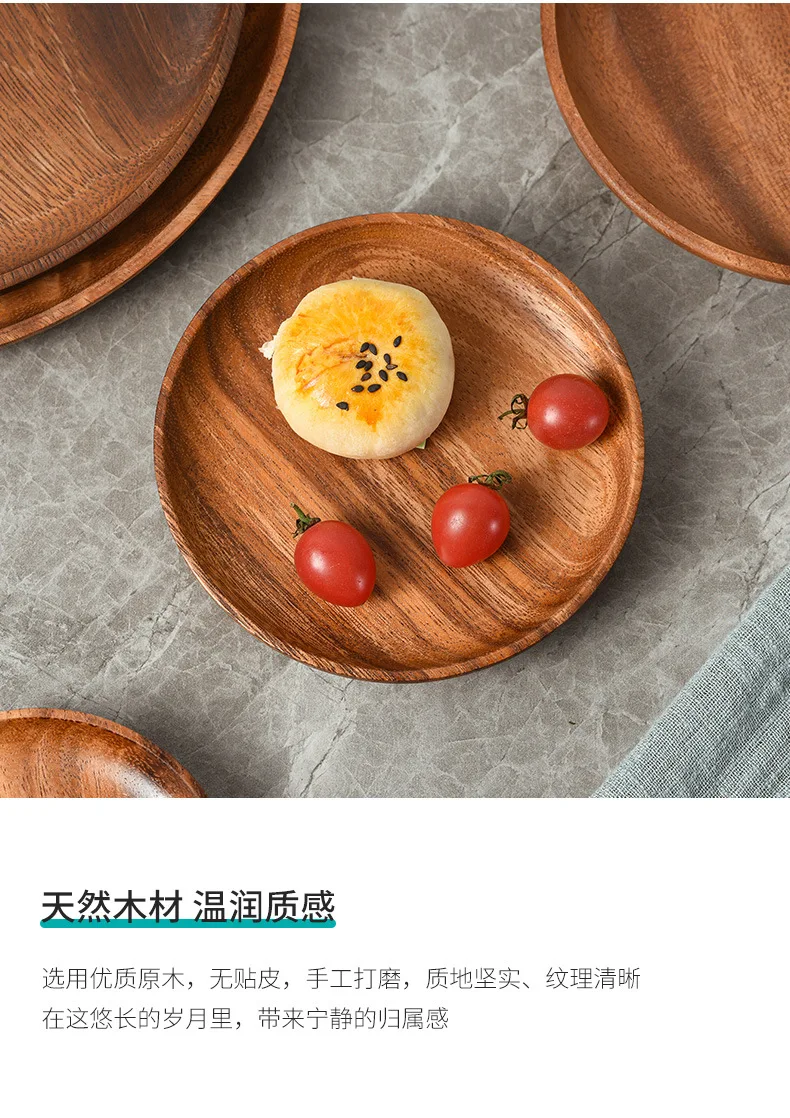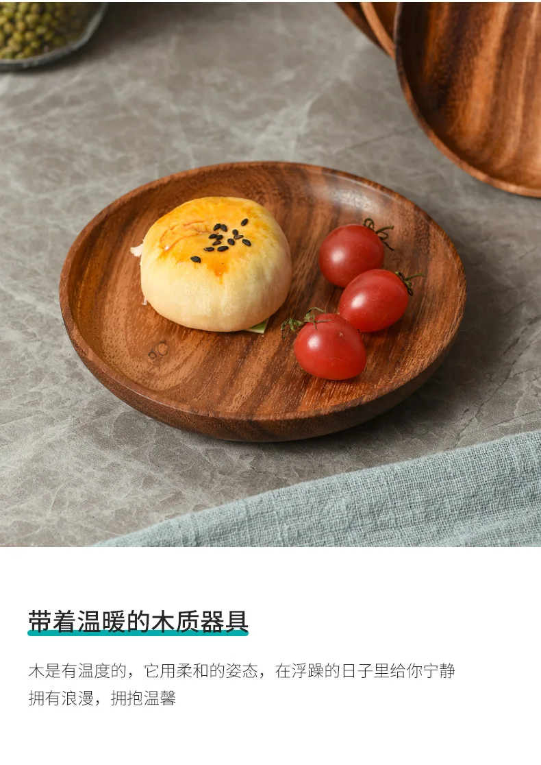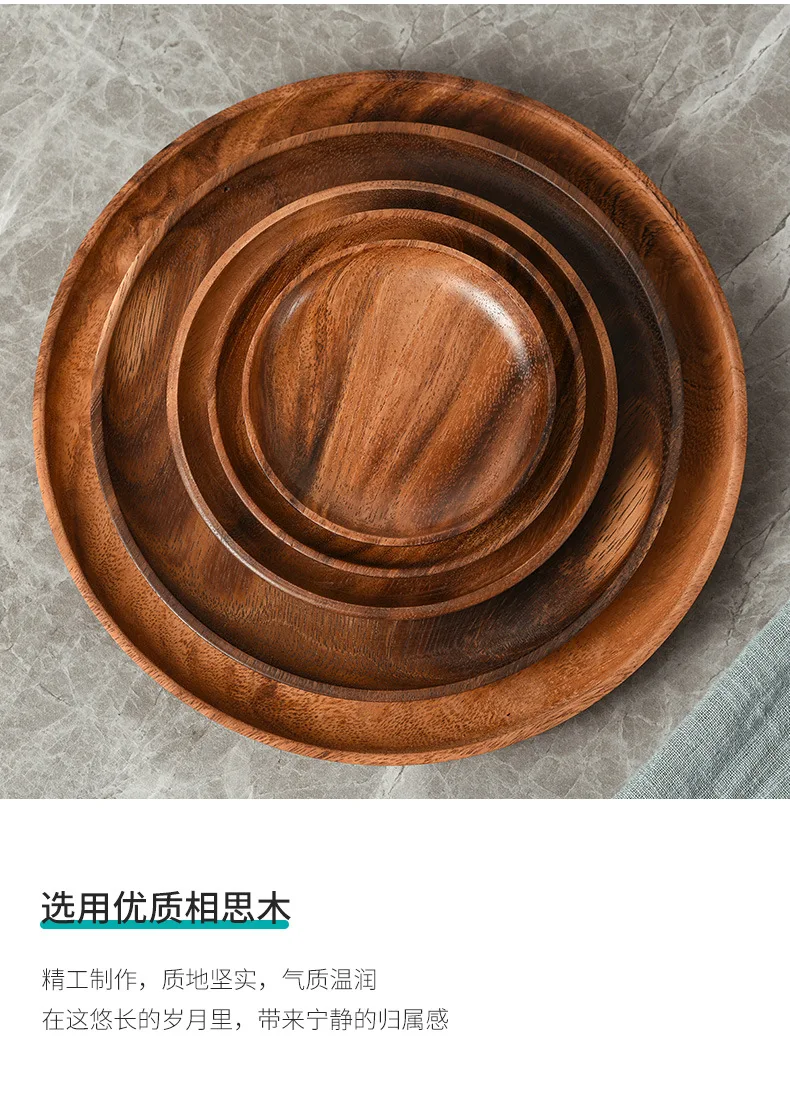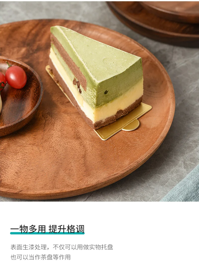 Acacia Wood Round Serving Tray for Salads and Desserts