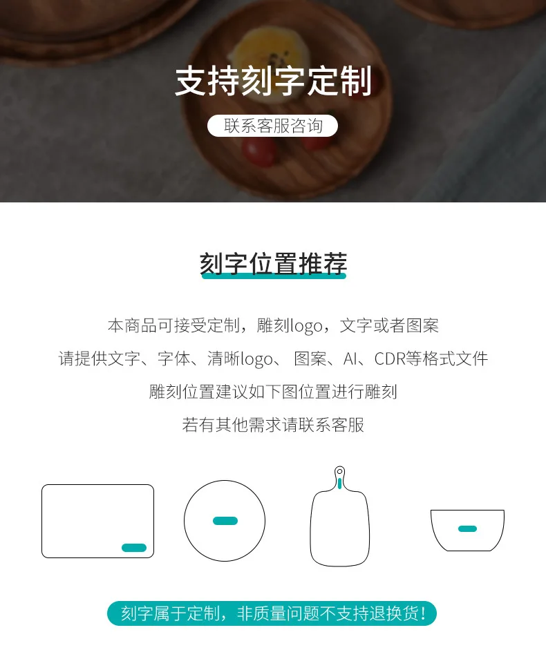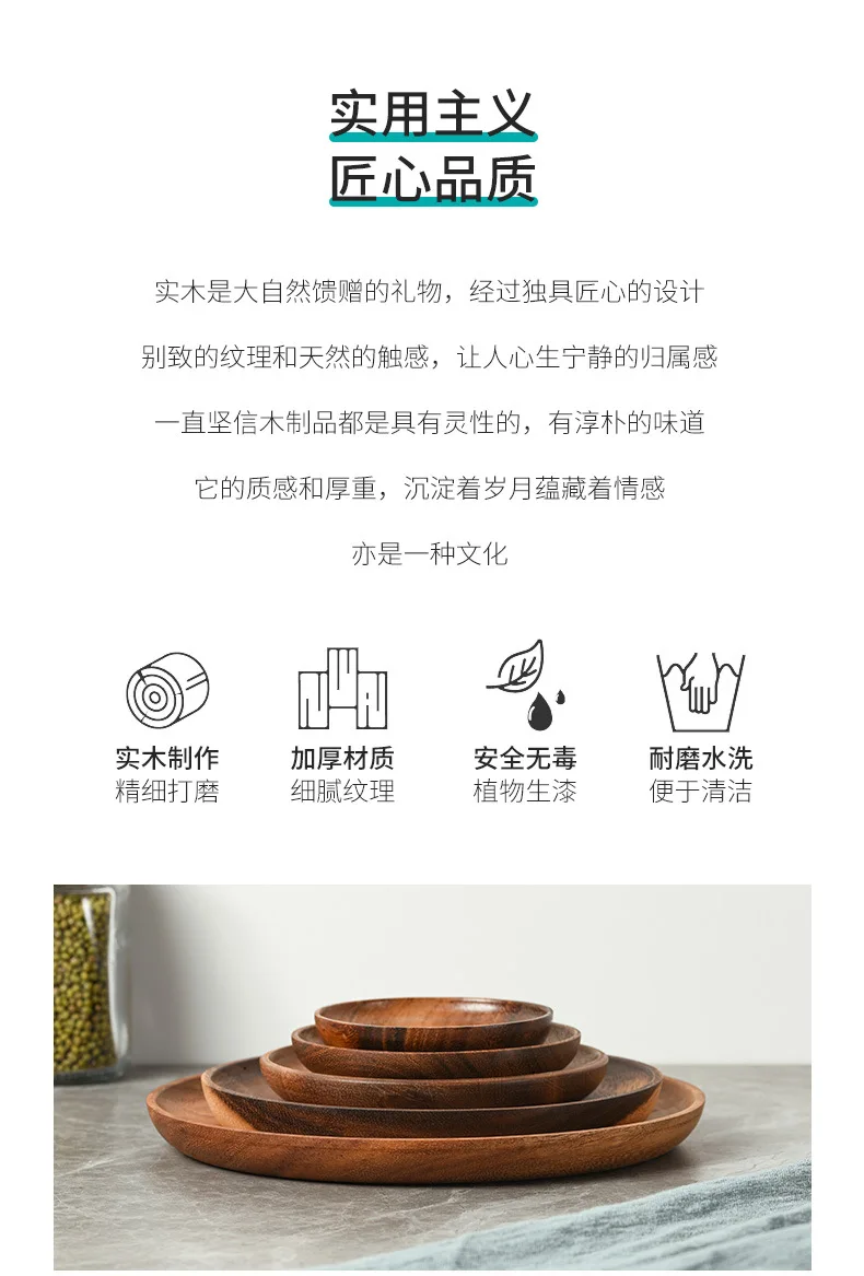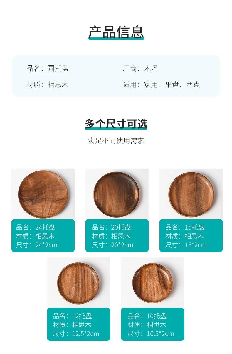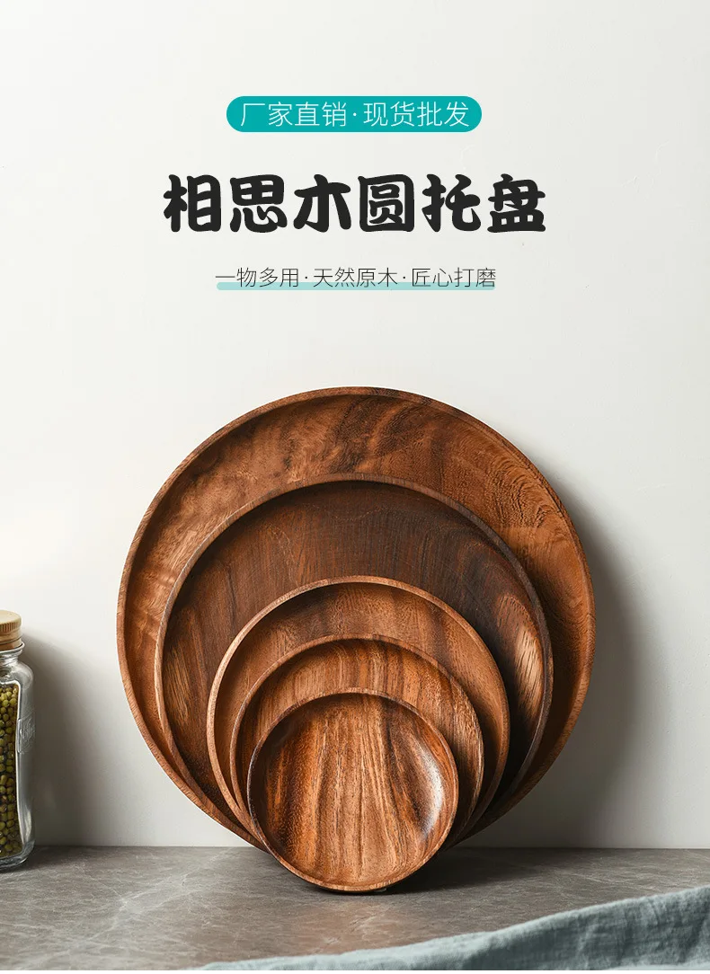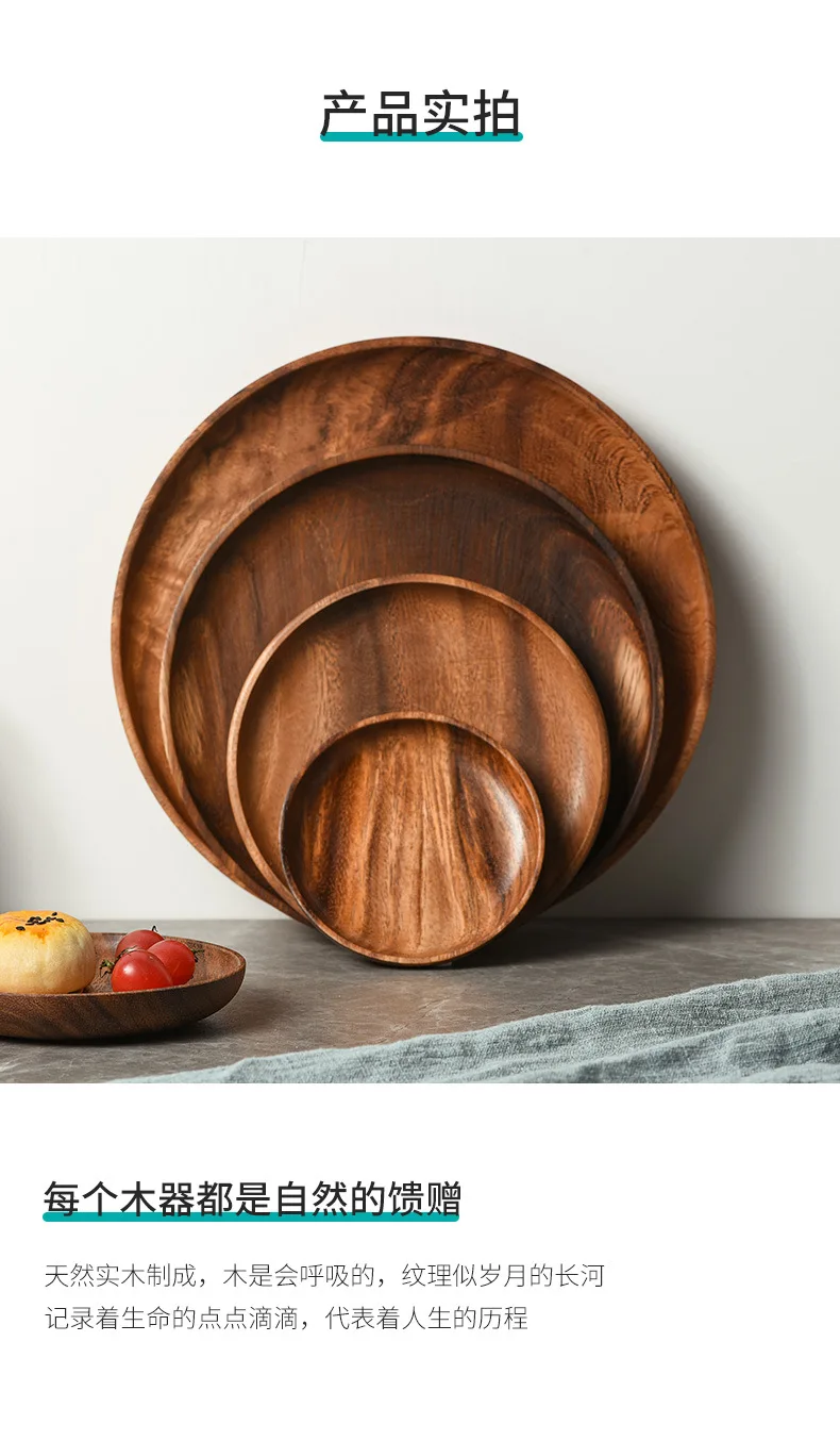 Acacia Wood Round Serving Tray for Salads and Desserts