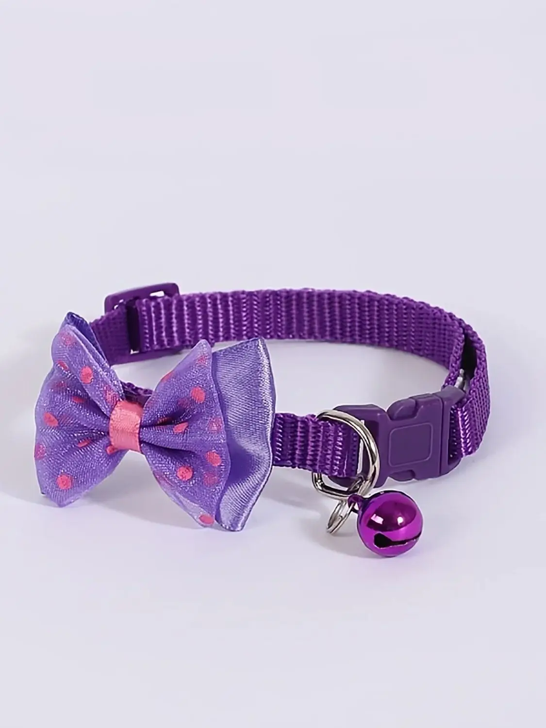 Adjustable Nylon Pet Collar with Bow and Bell Pendant