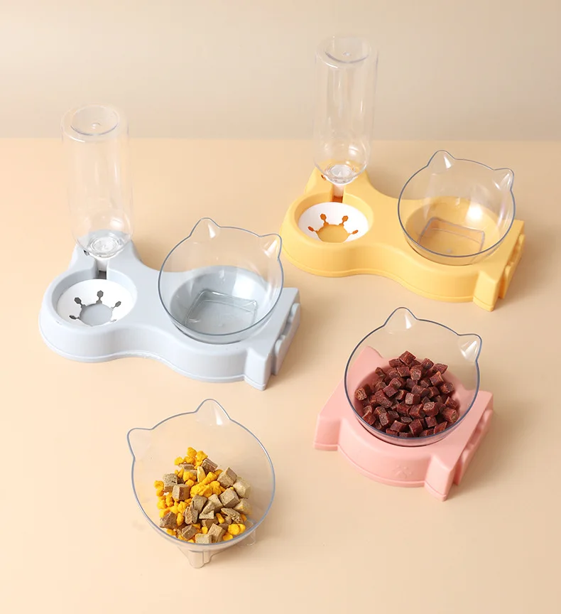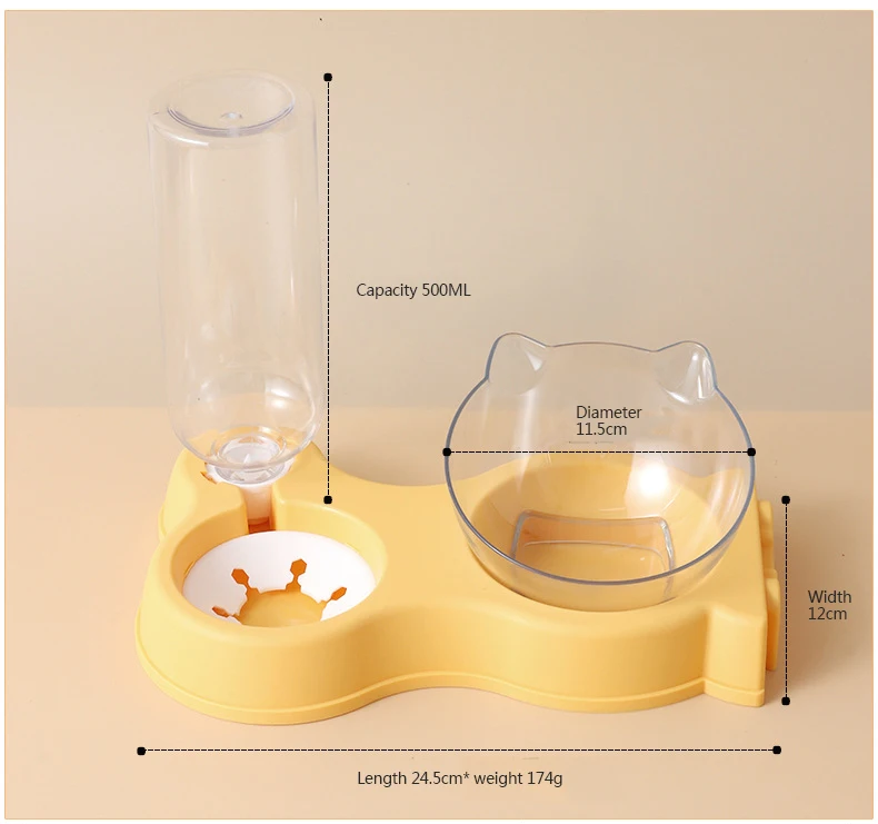 All-in-One Pet Food Bowl, Automatic Feeder with Drinking Fountain and Raised Standing Dish