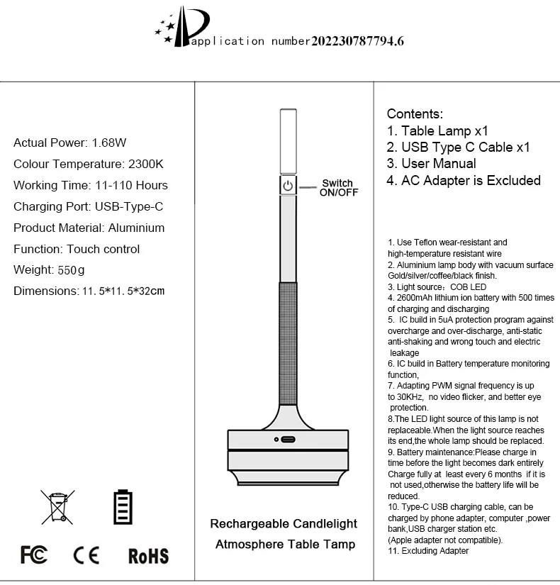 Aluminum Touch Glow: USB Rechargeable LED Table Lamp, Perfect for Outdoor Camping Atmosphere