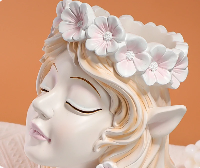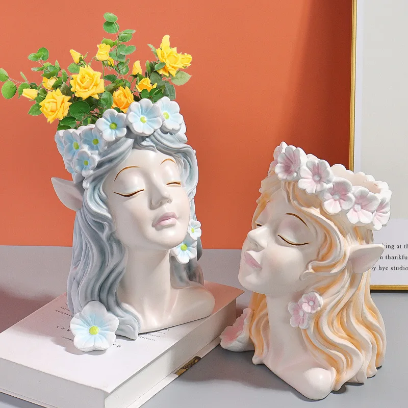 Angelic Elegance, Nordic Resin Flower Vase – A Modern Abstract Human Face Design for Unique Home Interior Decoration