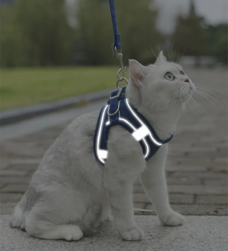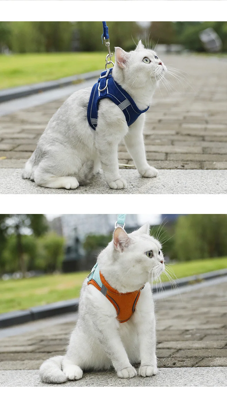 Anti-Breakaway Vest & Harness Set, Adjustable Kitten Vest & Harness with Reflective Stripes for Maximum Safety and Security