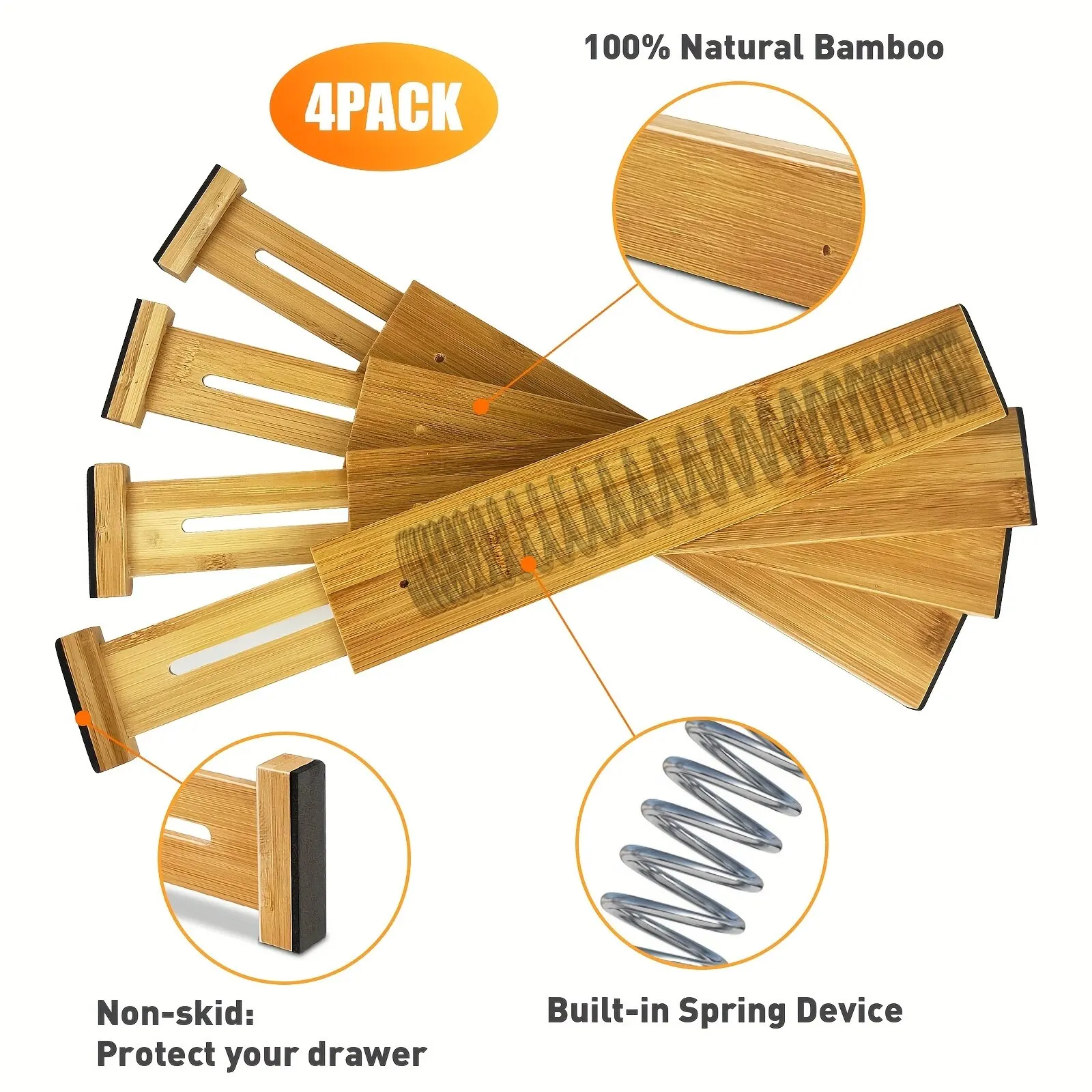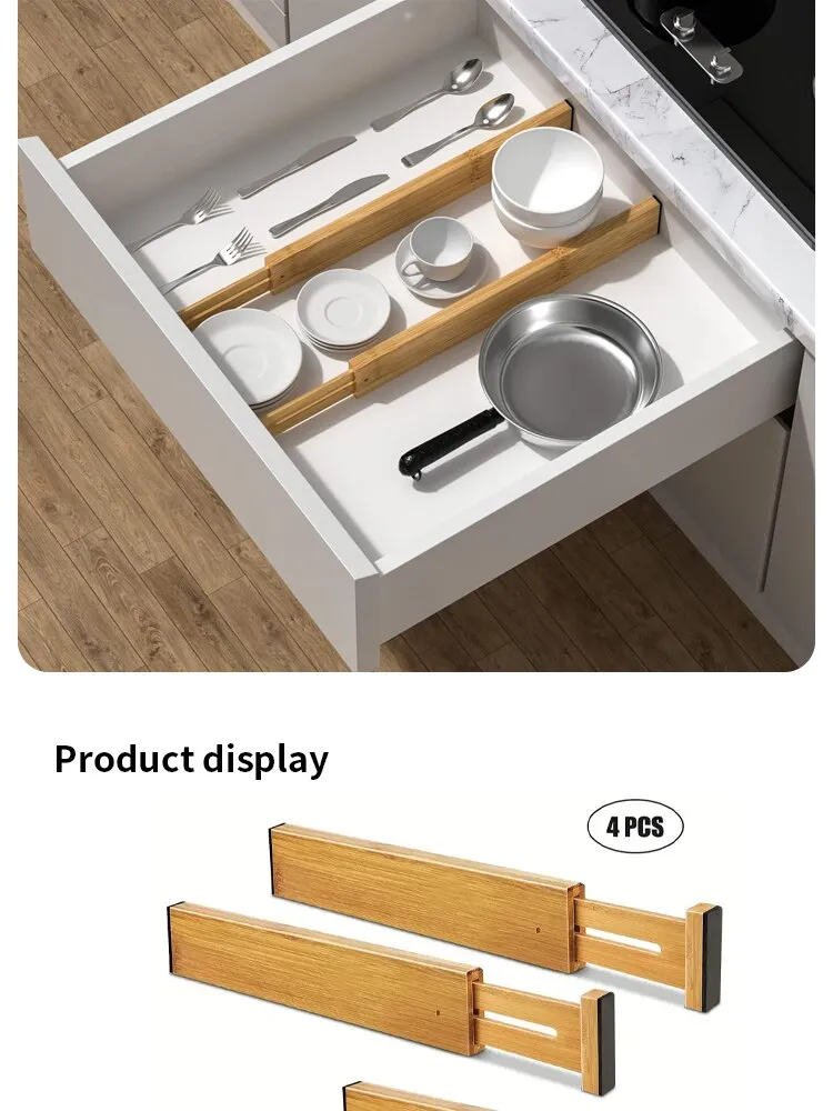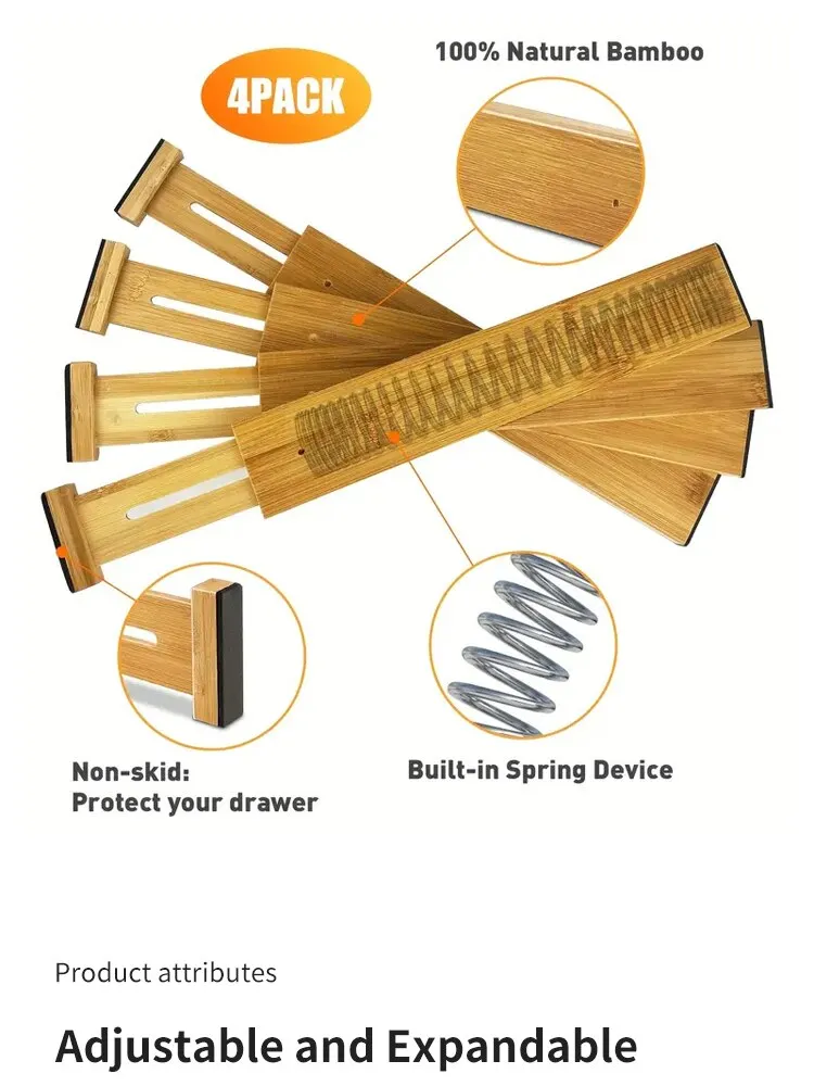 Bamboo Ease Drawer Dividers: Set of 4 Adjustable, Expandable Organizers