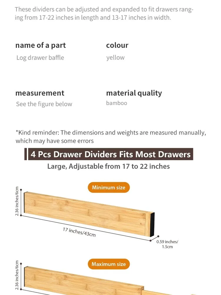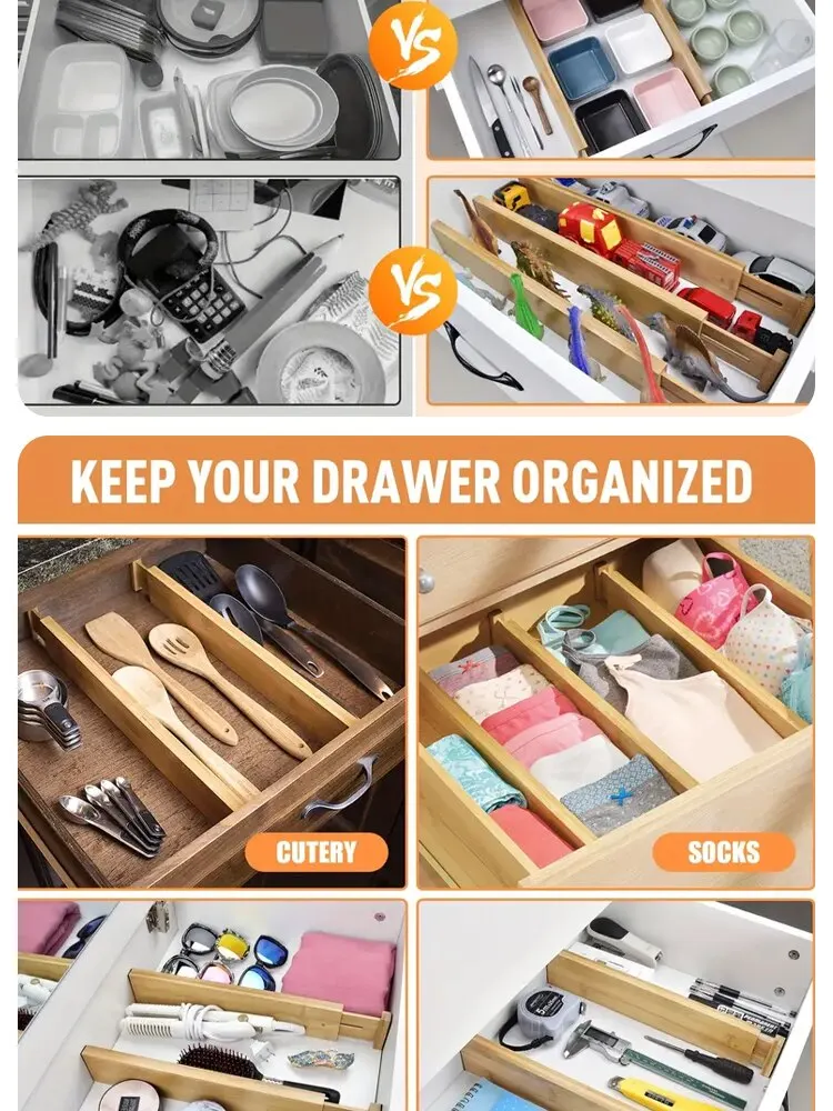 • Adjustable and expandable :Allows you to customize the size of the dividers to fit your drawers and adjust them as needed.