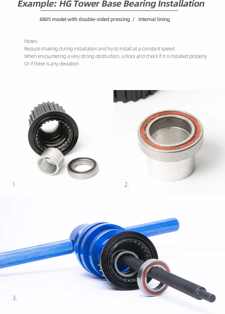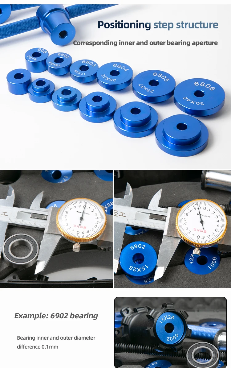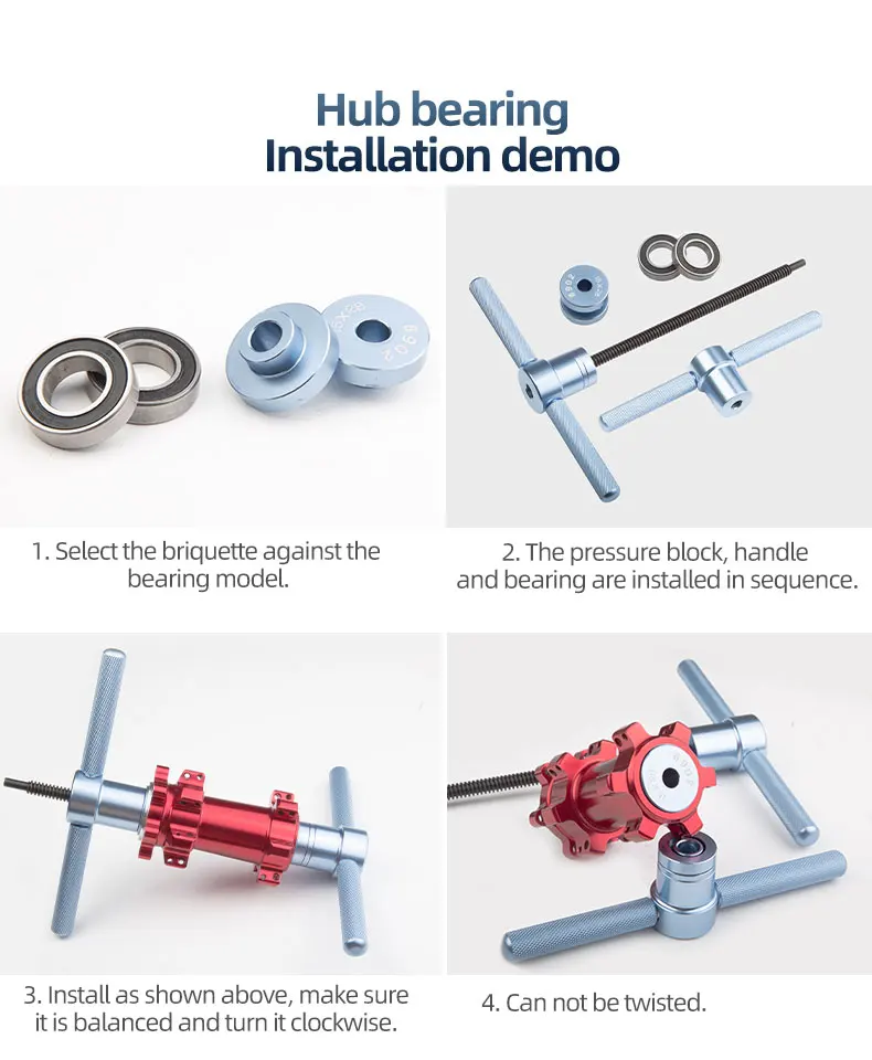 1. Please refer to the size of the bearing to install, make sure do not install headset using this too, the tool is special for bearings installation