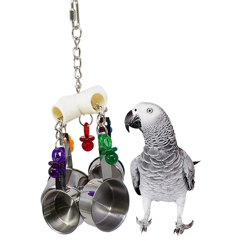 Parrot Toys Stainless Steel 4 Pots Budgie Toys Large Bird Toys Funny Cockatiels Parakeet African Grey Parrots Chicken Bird Toys