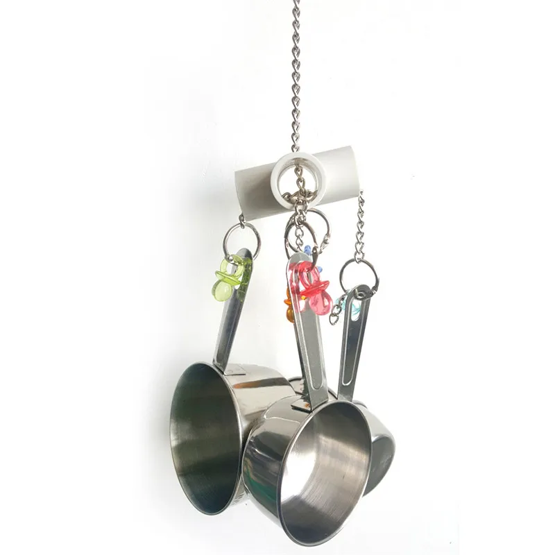 Parrot Toy Stainless Steel 4 pots string Bird Chewing Bite Toys Pet Supplies Acrylic Cage Pendant Decor Bird Supplies
