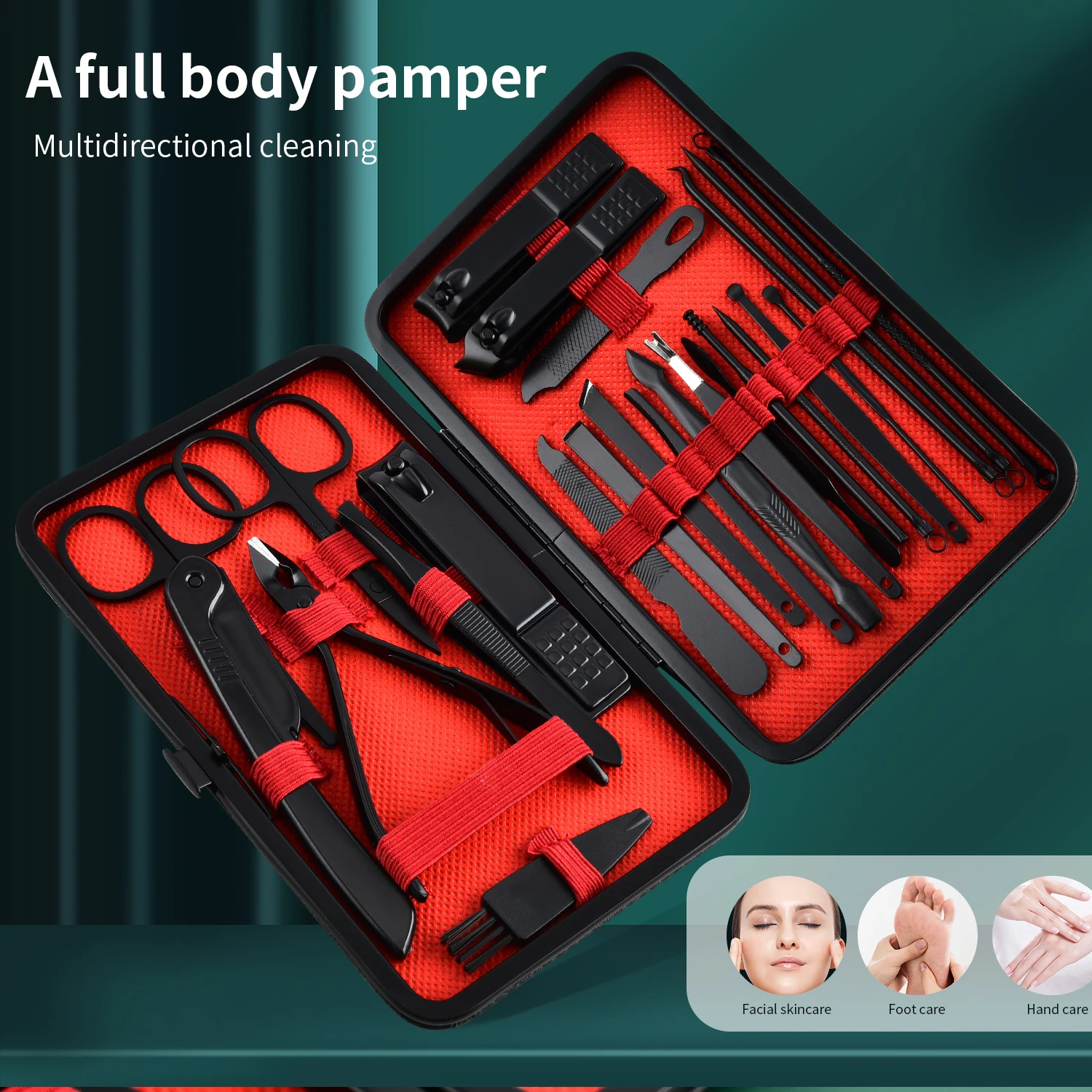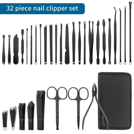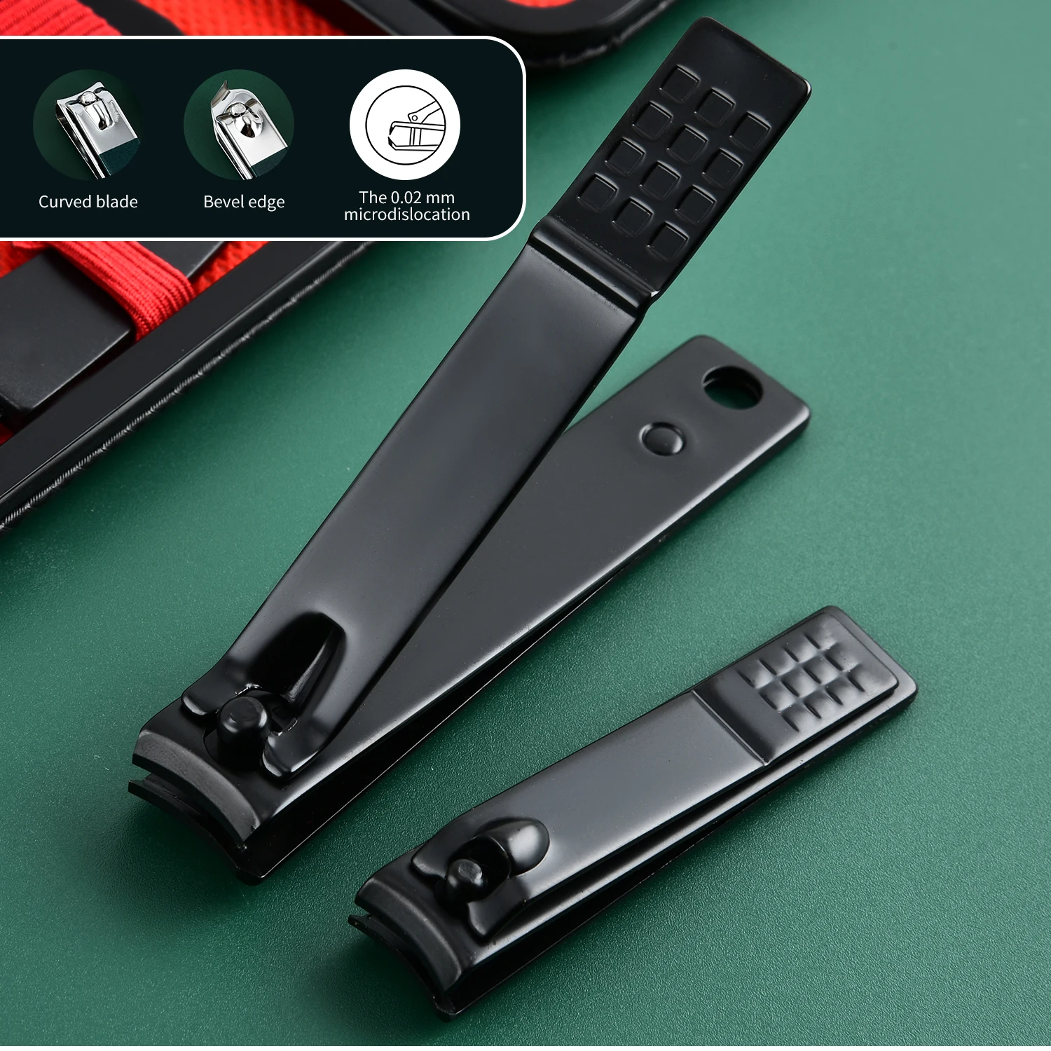 Black Nail Clippers Kit with Ultra Sharp Professional Pedicure Tools