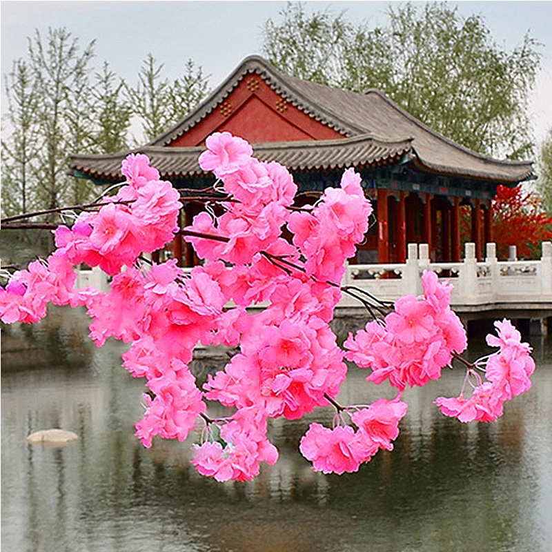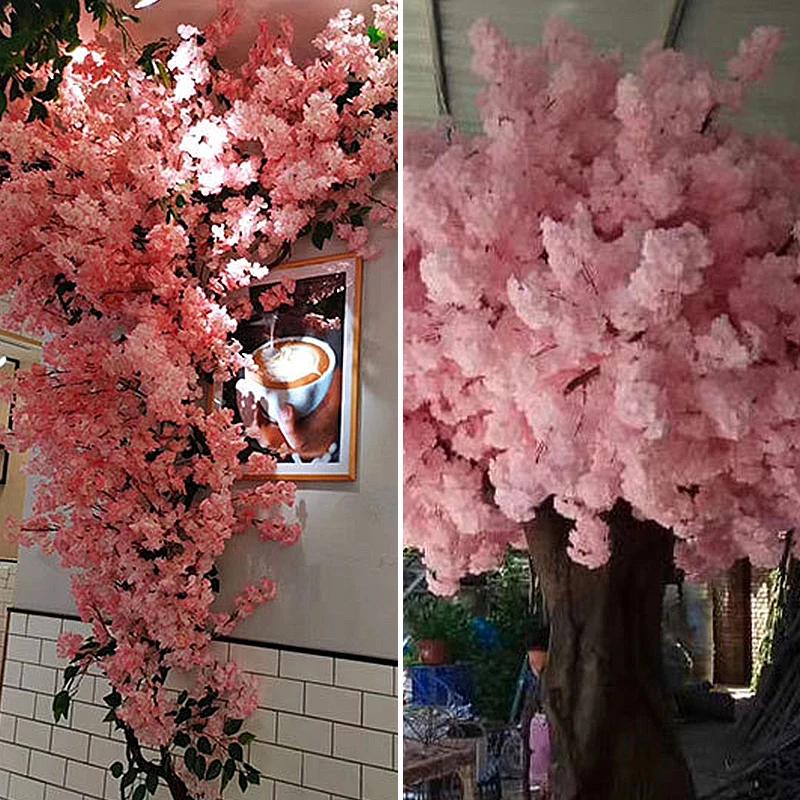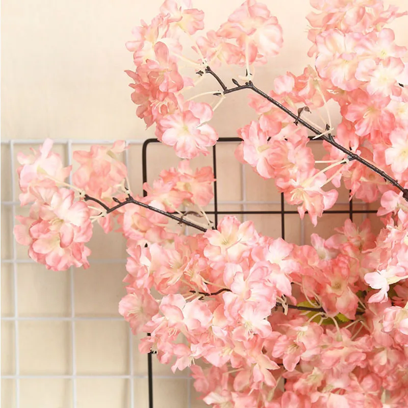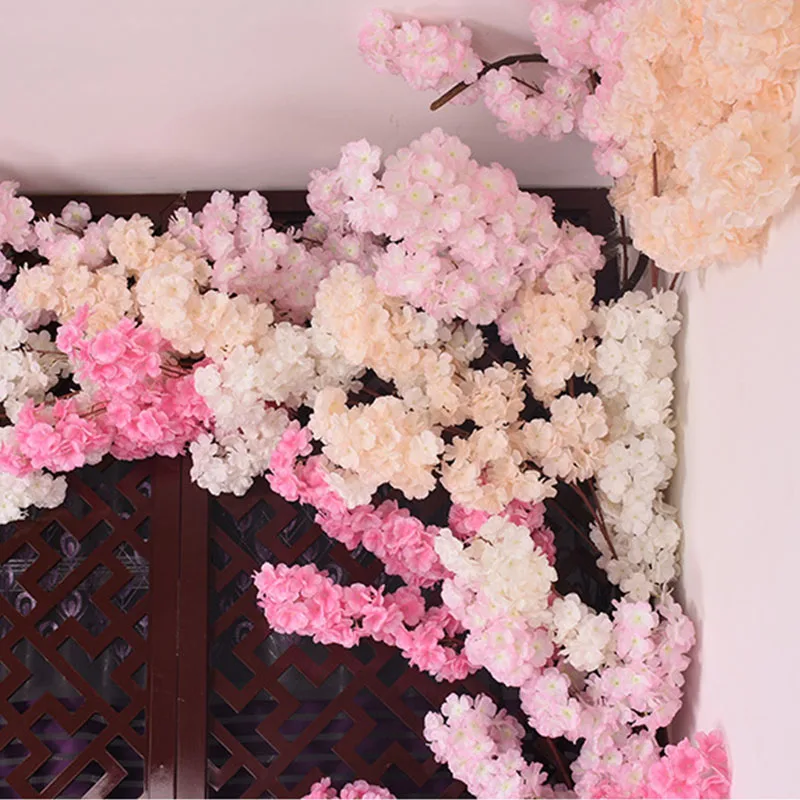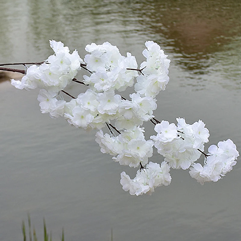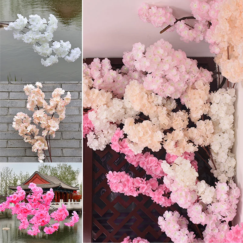 120cm Artificial Cherry Blossom Simulation Cherry Flower Branch Twig Fake Sakura Encrypted Ribbon Pear Tree Branch Party Decor