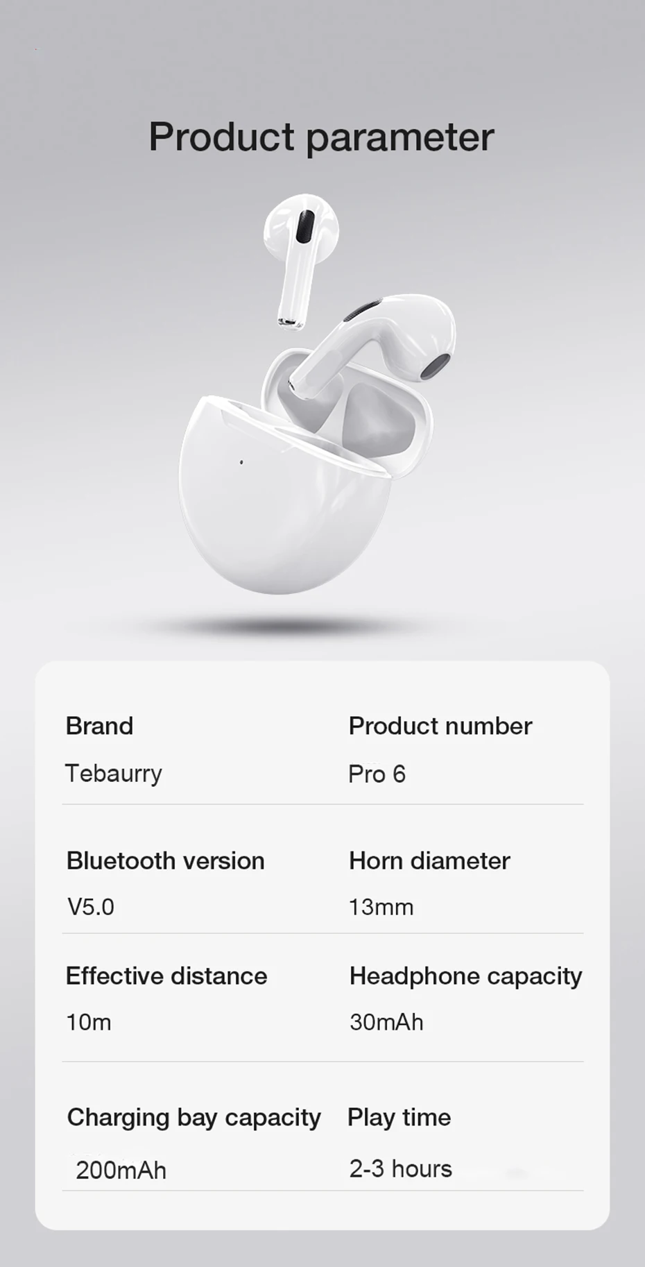 6.Capacity of Charging Case:200mAh