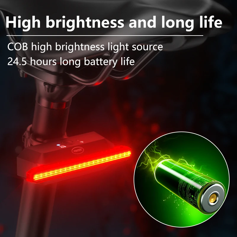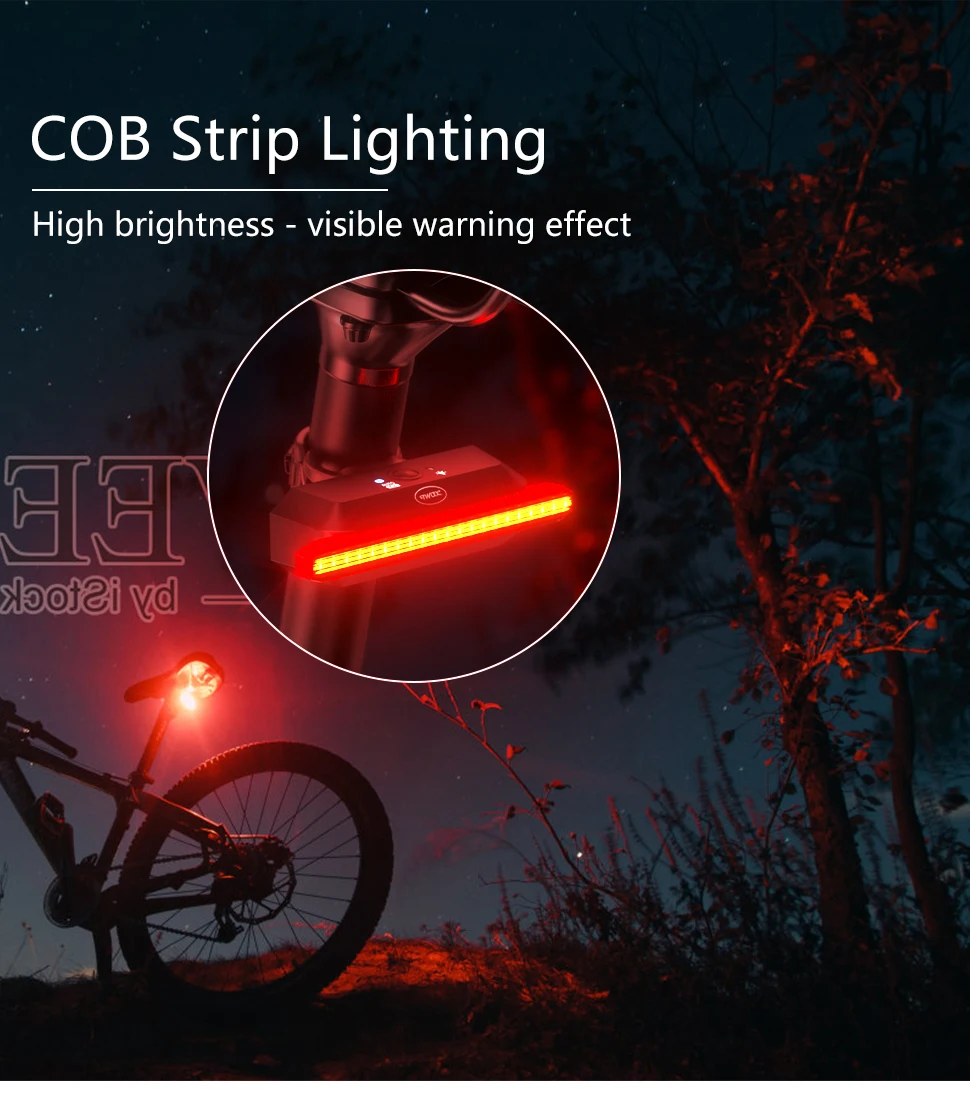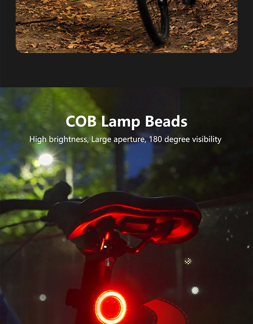 【High brightness/large aperture】 The rear bike light adopts a COB light source, 180 degree visibility. Daytime running strobe lights make it easier for other road users to see you.