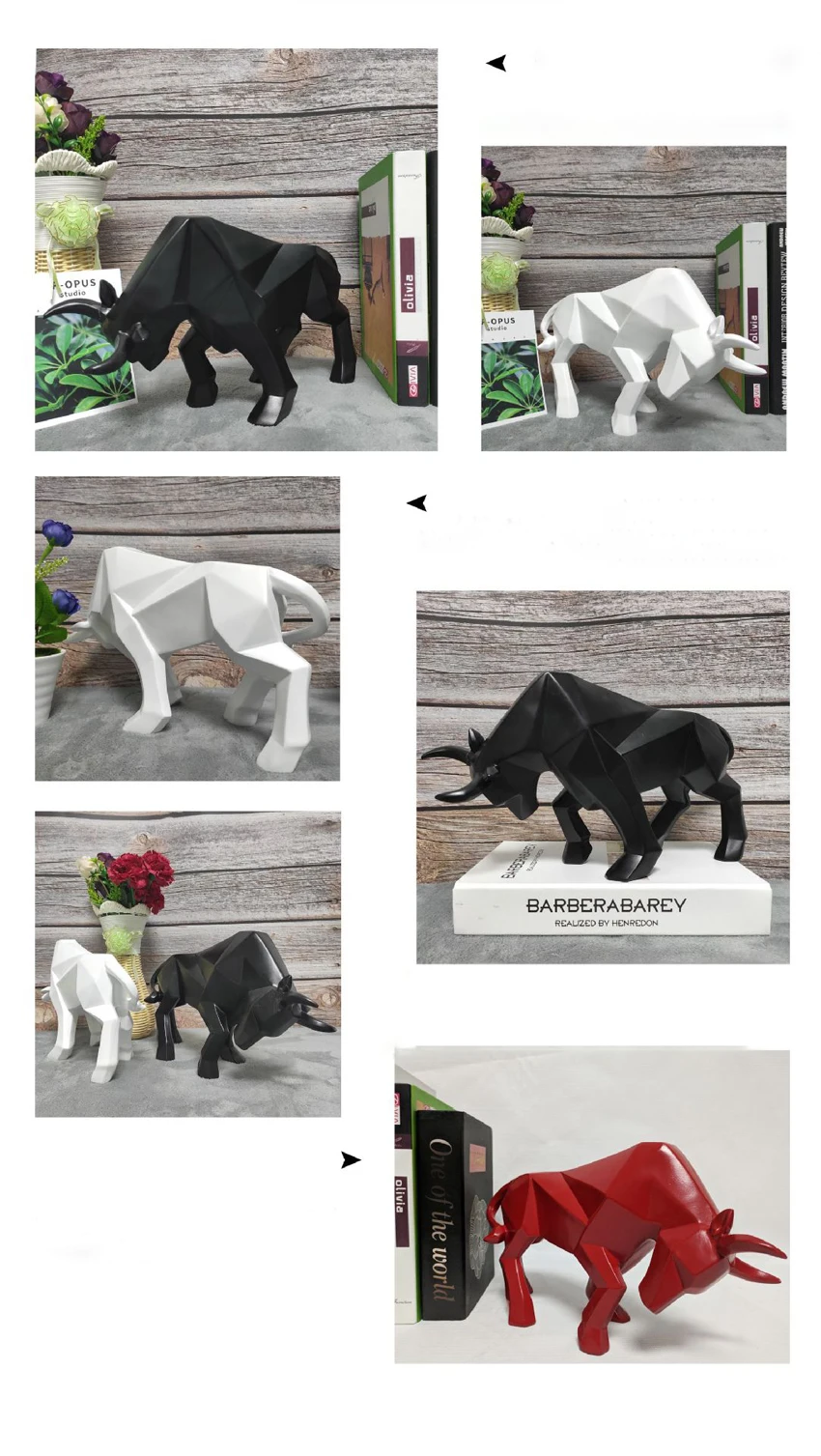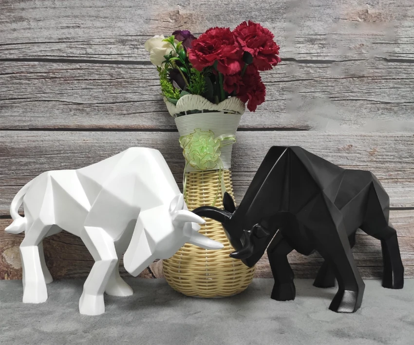 2.Modern Simple Nordic Style Bull Statues: The bull is stand for strength & courage. The modern bull ornaments crafts make your room artistic. The Bison sculptures will bring the strength & courage to you.