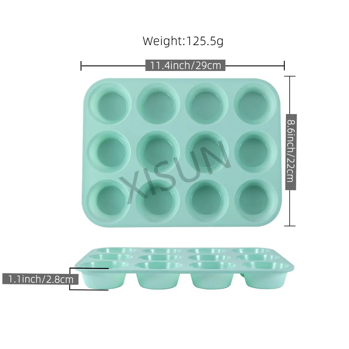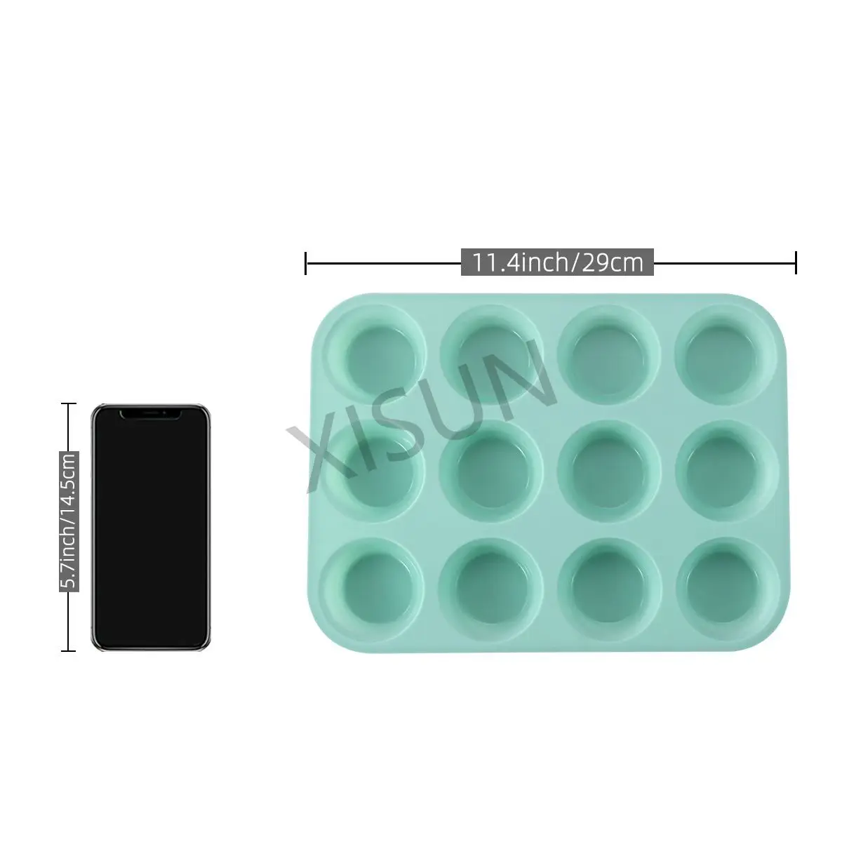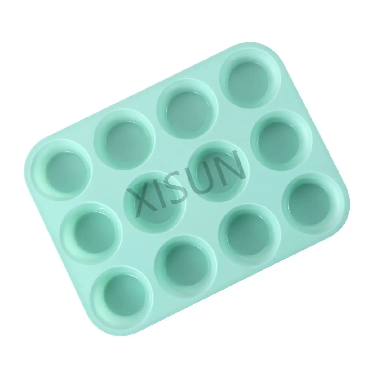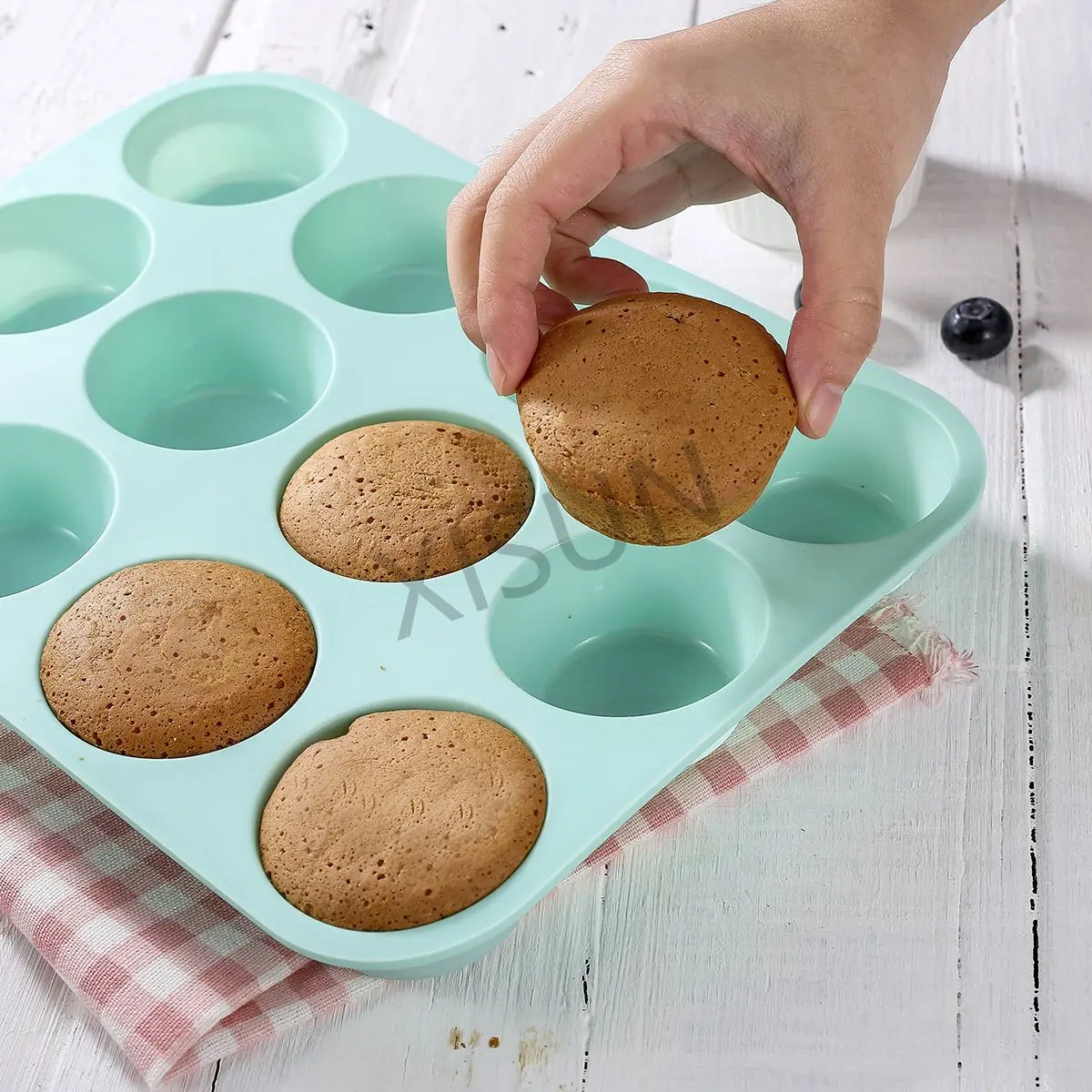 12 Cups Nonstick Bakeware Ba-king Cake Pan Round Cupcake Muffin Mold Silicone Muffin Trays