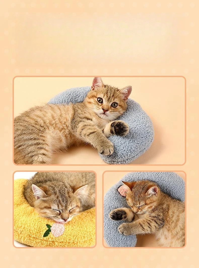 Cartoon-Style U-Shaped Cat Pillow, Soft, Breathable, and Perfect for Deep Sleep