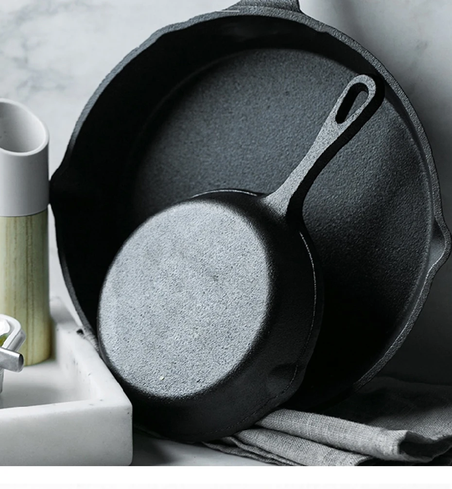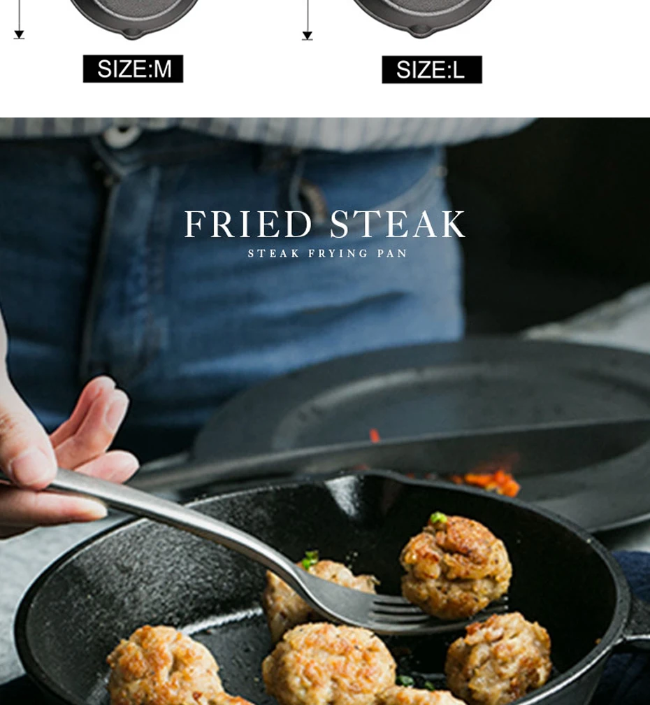 Iron Frying Pan 27/31cm Flat Bottom Skillet Uncoated Iron Wok Non-stick Steak Omelette Pan Kitchen Cookware Gas and Induction