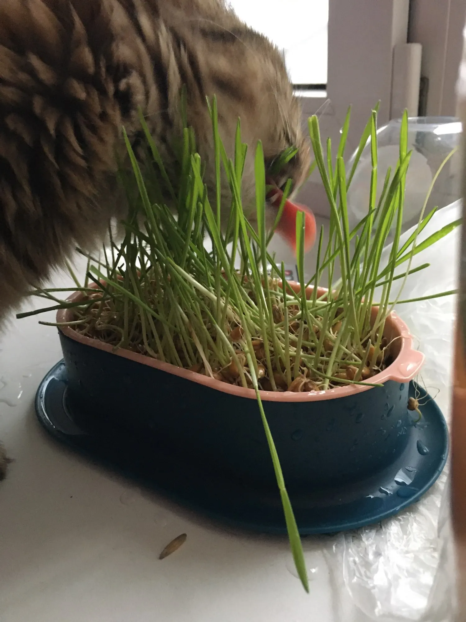It is good for weed and cats to weed. My💪🏻At the Bazaar (Bo for a pet store, she is a sprout) I bought 200g each: wheat, chicken, oats. Can Lisha whea...More
