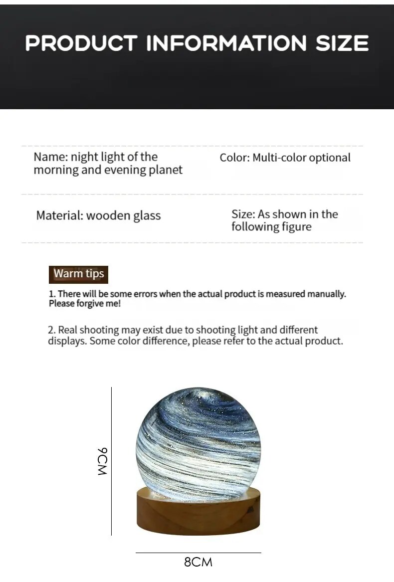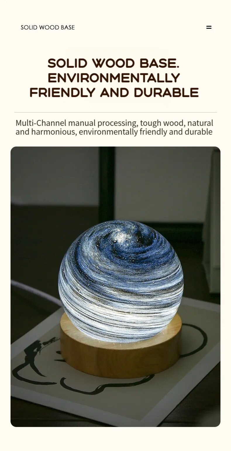 Celestial Glow: 3D Moon Glass Lamp with Wooden Stand – A Mini Night Light Powered by USB